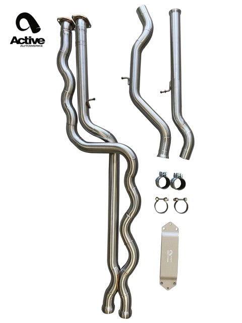 The Active Autowerke F8X Equal Length Mid Pipe was specifically designed to create equal length exhaust pipes adjusting for the difference between the front and rear banks of the F80 M3 and F82 M4 down pipes before mixing in an X-pipe and creating an exhaust note different from the normal "S55 sound". Engineered for an exact fit on both the F80 M3 and F82 M4, the difference in sound with this mid pipe will be noticeable the first time with an open throttle!