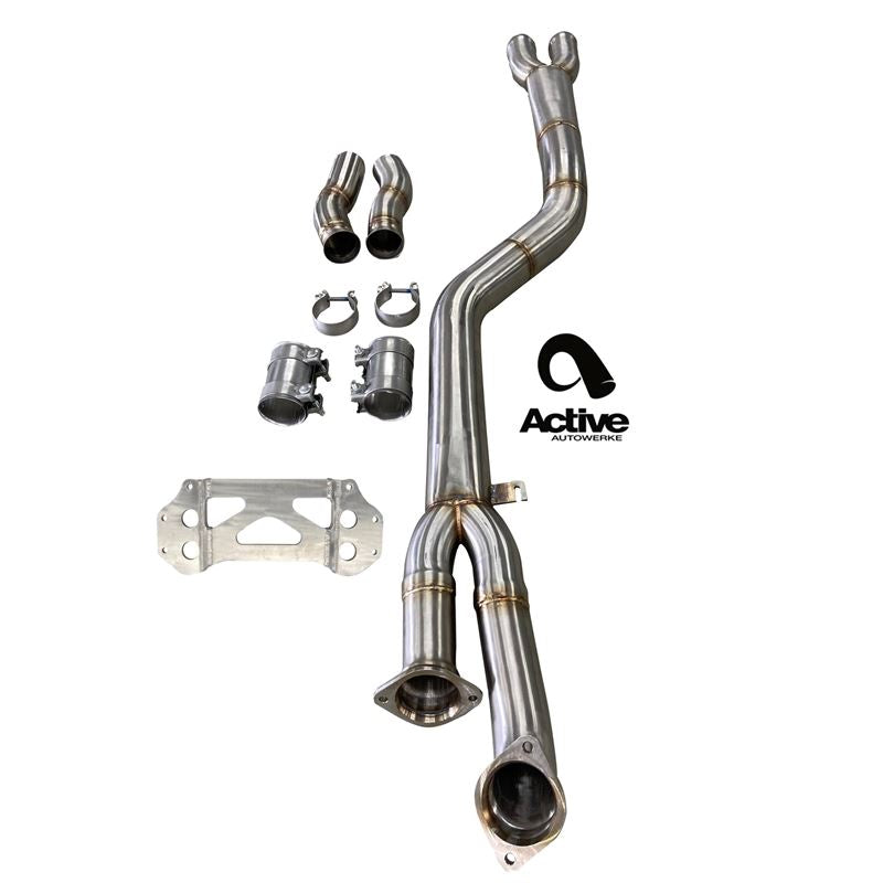 Active Autowerke is able to improve on the factory mid-pipe by mixing the sounds earlier and for a longer period creating a deeper tone to the exhaust sound.