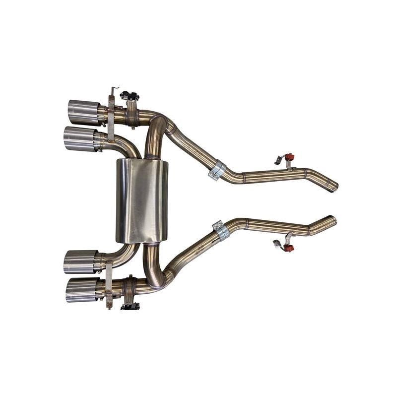 The Active Autowerke G80/G82 rear exhaust was carefully engineered to increase the sound level over the factory M3 and M4 exhaust, while also allowing for optimum flow and resonance by reusing the actuators from the BMW valves. Every effort was made in addressing the overly quiet sound of the stock OEM exhaust while designing an exhaust worthy for an "M" car. We believe our rear exhaust combined with our mid-pipe and catted downpipes offers the best combination of sound and performance versus any other system on the market today. Available for both models, this axle-back exhaust gives your BMW the deep, throaty, growl a car of its caliber should have had from the factory!