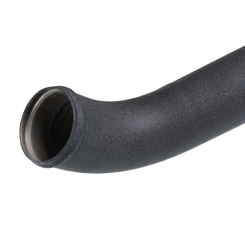Constructed of 2" into 2-1/2" mandrel-bent aluminum tubing for maximum flow then powder-coated wrinkle-black for heat and corrosion resistance. The smooth transition bends decrease turbulence and minimize pressure loss, while increasing horsepower and torque. Installs on the Hot-Side to transfer heated air smoothly to the intercooler to accelerate heat transfer for better performance.