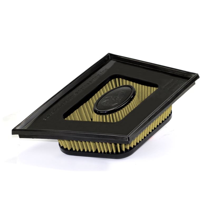 Magnum Flow Pro Guard 7 Custom Tan Air Filter (73-80209) by aFe. Constructed with 100% polyurethane on all four sides, this high-flow, oiled OE replacement performance filter will outflow the stock paper filter by up to 68% for improved horsepower and torque. The Pro-GUARD 7 air filter uses five layers of progressively finer mesh cotton with two layers of synthetic gauze media to provide maximum protection with the highest cumulative filtration efficiency for severe duty environments. Washable and reusable for multiple cleaning cycles, the tall, open, evenly spaced pleats provide excellent dust holding capacity for a longer service cycle between cleanings. An integrated urethane bump seal insures tight, no leak seal over the life of the filter.