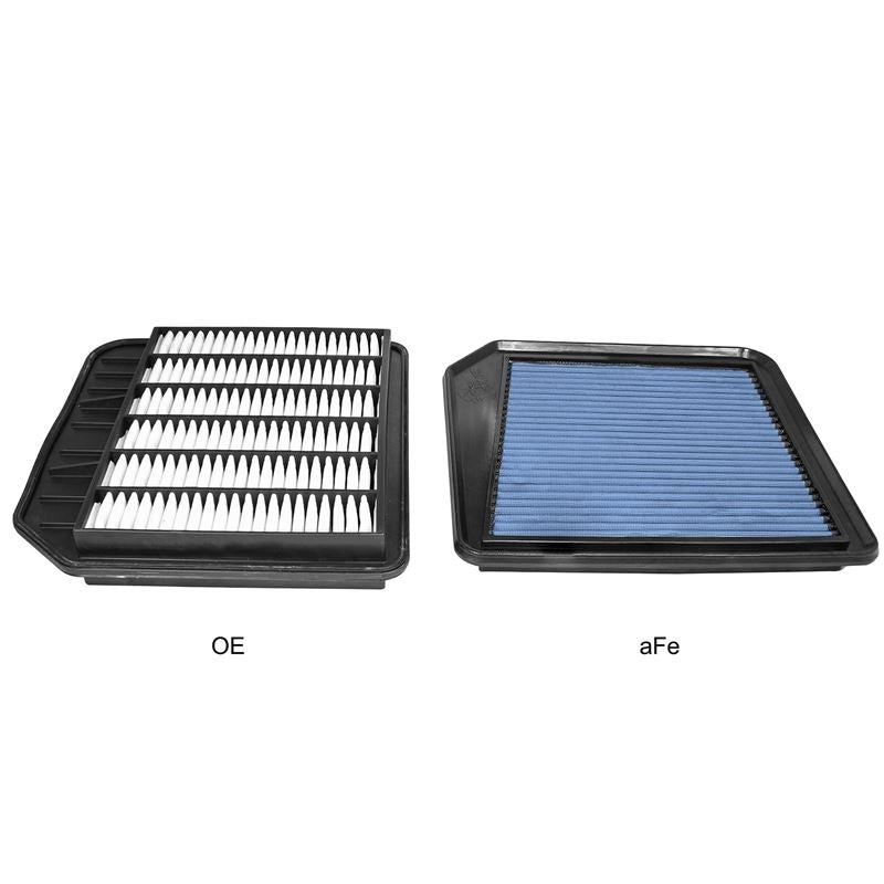 Magnum Flow Pro 5R Panel Blue Air Filter (30-10241) by aFe. Constructed with 100% polyurethane on all four sides, this high-flow, oiled OE replacement performance filter will outflow the stock paper filter for improved horsepower and torque. The Pro 5R air filter uses five layers of progressively finer mesh cotton gauze media to provide maximum airflow for best performance results. Washable and reusable for multiple cleaning cycles, the tall, open, evenly spaced pleats provide excellent dust holding capacity for a longer service cycle between cleanings. An integrated urethane bump seal insures tight, no leak seal over the life of the filter.