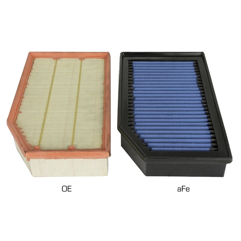 Magnum Flow Pro 5R Panel Blue Air Filter (30-10280) by aFe. Constructed with 100% polyurethane on all four sides, this high-flow, oiled OE replacement performance filter will outflow the stock paper filter for improved horsepower and torque. The Pro 5R air filter uses five layers of progressively finer mesh cotton gauze media to provide maximum airflow for best performance results. Washable and reusable for multiple cleaning cycles, the tall, open, evenly spaced pleats provide excellent dust holding capacity for a longer service cycle between cleanings. An integrated urethane bump seal insures tight, no leak seal over the life of the filter.