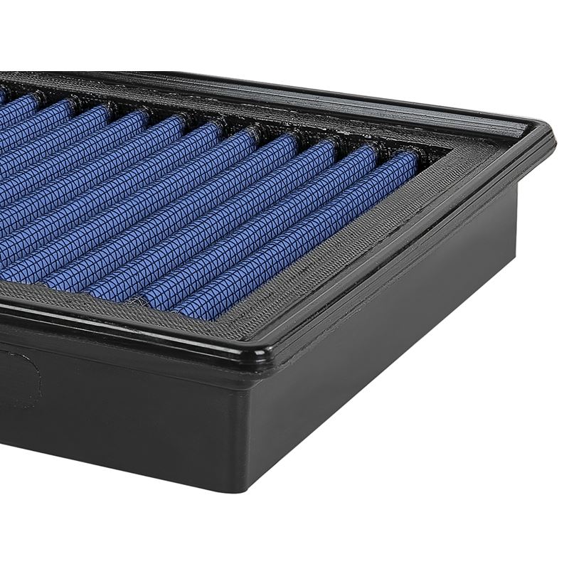 Magnum Flow Pro 5R Panel Blue Air Filters (30-10271-MA) by aFe. Constructed with 100% polyurethane on all four sides, this high-flow, oiled OE replacement performance filter will outflow the stock paper filter for improved horsepower and torque. The Pro 5R air filter uses five layers of progressively finer mesh cotton gauze media to provide maximum airflow for best performance results. Washable and reusable for multiple cleaning cycles, the tall, open, evenly spaced pleats provide excellent dust holding capacity for a longer service cycle between cleanings. An integrated urethane bump seal insures tight, no leak seal over the life of the filter.