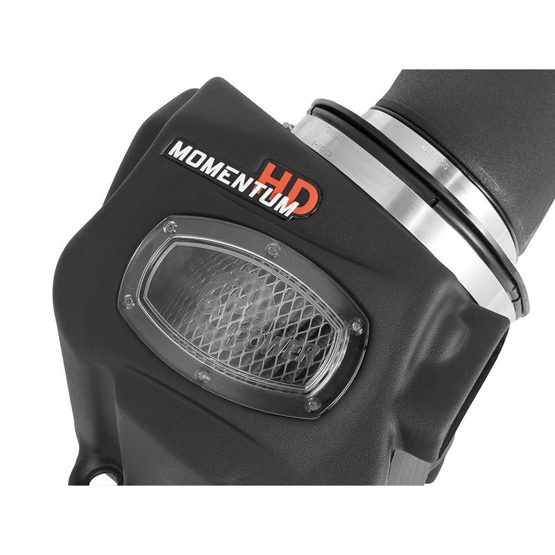 Momentum GT Black Cold Air Intake System with Pro Dry S Filter (51-73116) by aFe. A custom CAD designed roto-molded housing made from heat resistant material eliminates the use of multiple components and ensures the coolest air intake charge available. A large clear sight window allows for filter inspection without removal of the air box. The roto-molded housing is made out of black cross-linked polyethylene. Carbon Fiber Accent are provided for car show quality and to further distinguish your vehicle from others.