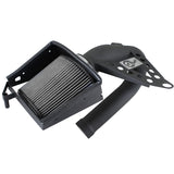 Momentum GT Aluminum Black Cold Air Intake System with Pro Dry S Filter (51-74101) by aFe. A custom CAD designed roto-molded housing made from heat resistant material eliminates the use of multiple components and ensures the coolest air intake charge available. A large clear sight window allows for filter inspection without removal of the air box. The roto-molded housing is made out of black cross-linked polyethylene. Carbon Fiber Accent are provided for car show quality and to further distinguish your vehicle from others.