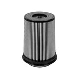 Magnum Flow Pro Dry S Round Straight Gray Air Filter (21-91141) by aFe. This high flow Pro DRY S air filters are constructed with 100% polyurethane on all sides and will out flow the stock paper filters for improved performance. Two layers of progressively finer synthetic media provides maximum convenience and can be cleaned with soap and water. Washable and reusable for multiple cleaning cycles, the tall, open and evenly spaced filter pleats provide excellent dust holding capacity for longer service cycle between cleanings. An integrated urethane bump seal insures a tight, leak-free seal over the life of the filter. The aFe filter system increased air flow 25% over the factory air filter set increasing horsepower, torque and improving throttle response.