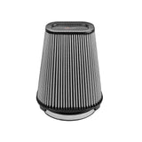Magnum Flow Pro Dry S Rectangular Tapered Gray Air Filter with Carbon Fiber Top by aFe. This high flow Pro DRY S air filters are constructed with 100% polyurethane on all sides and will out flow the stock paper filters for improved performance. With three layers of progressively finer mesh synthetic media between 100% polyurethane top and base, this high flow, "oil-free" conical performance filter provides maximum convenience and easy maintenance with excellent airflow. Washable and reusable for multiple cleanings, the tall open evenly spaced pleats provide excellent dust holding capacity for longer service cycle between cleanings. Pliable polyurethane flange with integrated bumps insures tight, no leak seal over the life of the filter. This filter has a 99.2% filter efficiency.