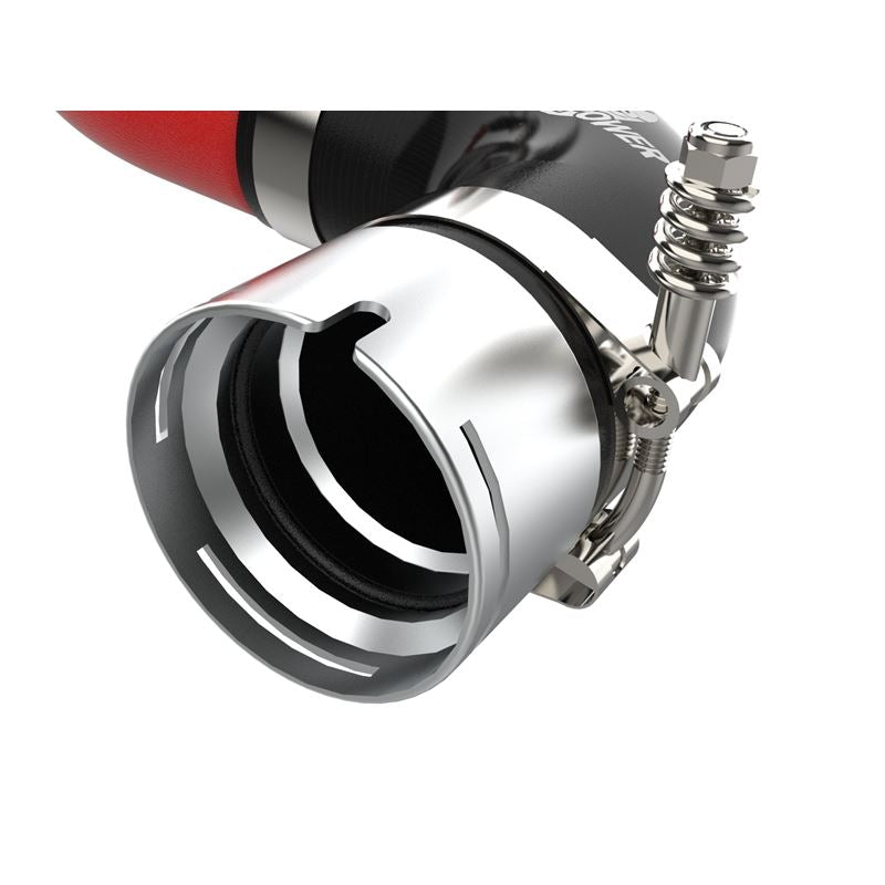 BladeRunner 3 IN Aluminum Hot Charge Pipe Red.Smooth transitions in the mandrel-bent aluminum pipes decrease turbulence and minimize pressure loss, increasing horsepower and torque. This kit includes high-quality, stainless-steel, spring-loaded T-bolt clamps and heavy-duty, 5-ply, polyester reinforced silicone couplings. These charge pipes feature factory style billet aluminum quick-connect adapter with an o-ring to ensure a leak-free fit while maintaining superior strength and durability. Finished in textured red powder coating with a unique laser-etched aFe power logo for a custom look.