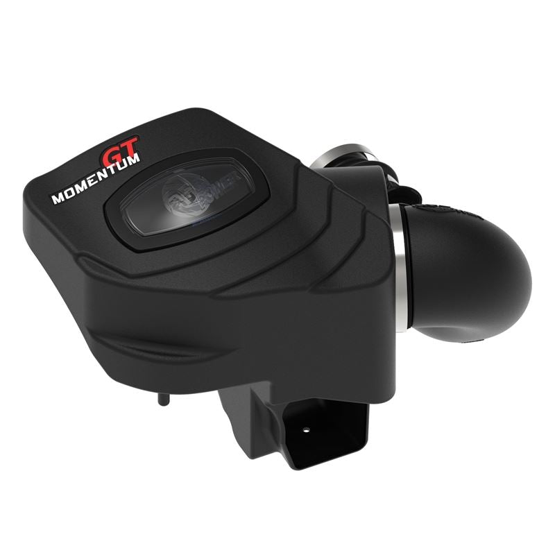 This 7-1/2in tall 360-degree radial flow air filter features a 4in round flange and our oiled Pro 5R media with five layers of progressively finer cotton gauze media for maximum airflow and performance. This media is best for street and track use. The smooth one-piece sealed housing, constructed of heat-resistant XLPE (cross-linked polyethylene) polymer, features our patent-pending filter-to-housing interface. A large, clear sight window allows for hassle-free filter inspection, without having to disassemble your system. The Momentum intake is designed to fit with the factory strut brace, with no modification necessary. This system features a high quality, computer-designed, dyno-tuned intake tube to achieve maximum power gains while maintaining a perfect fit. Its XLPE material is heat-soak resistant and extremely durable. This intake is designed to use factory mounting locations, minimizing the use of unnecessary hardware, ensuring a perfect fit every time. Its revolutionary design, featuring our patent pending filter-to-housing interface uses half the number of parts of a traditional cold air intake system. Stainless-steel worm clamps are included for strength, and a premium bellows coupling allows for ample flexibility. Momentum GT intakes are designed with fewer parts for a fast and easy installation.
