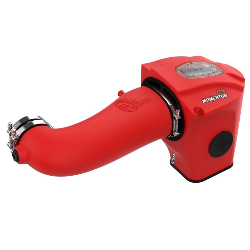A custom CAD designed roto-molded housing made from heat soak resistant material eliminates the use of multiple components and ensures the coolest air intake charge available. A large clear sight window allows for filter inspection without removal of the air box. The roto-molded housing is made out of red cross-linked polyethylene. It accommodates the "Hellcat" headlight air inlet for 2015-2023 Dodge Challenger models only (requires scoop p/n 54-72203-SR). This system uses a computer designed, dyno-tuned, roto-molded intake tube to achieve maximum power gains while maintaining a perfect fit. An injection molded fitting is mounted on the tube to provide a perfect connection for the temperature sensor. This Momentum GT intake system was designed around the largest filter possible to allow maximum performance and filtration. This cone filter has a massive oval flange and is 9" tall inverted top Pro DRY S filter media. The Pro DRY S performance air filter features 3-layers of progressive finer porosity synthetic media providing maximum convenience with 100% polyurethane frame for long life and multiple cleaning cycles. Premium stainless steel T-bolt clamps and a reinforced silicone hump coupling are used for strength and durability while also providing the most secure installation available. Momentum intakes are designed with fewer parts for a quick and simple installation.