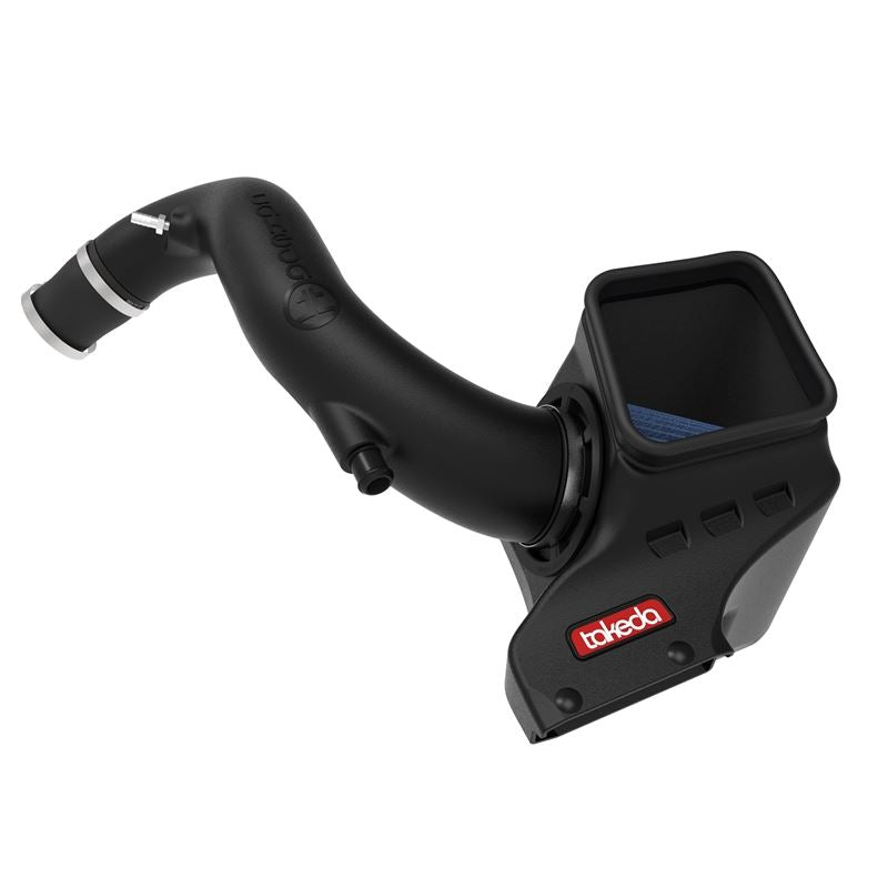 A specially developed 3-angle velocity stack smoothes the airflow transition from the air filter to the mandrel-bent aluminum intake tube. Unlike factory air intake tubes that have sound baffles and make awkward bends, the Takeda intake tube is designed to give the engine less restrictive breathing, incorporating larger diameters and smooth bends. The end result is airflow that is increased at least 30% over the stock system, with significant gains in horsepower and torque.