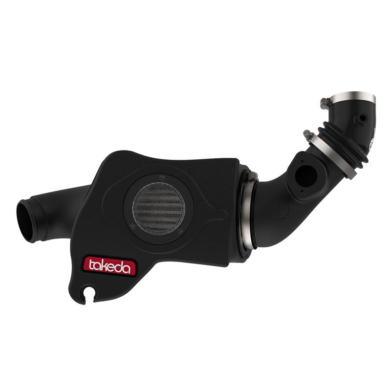 A specially developed 3-angle velocity stack smoothes the airflow transition from the air filter to the mandrel-bent aluminum intake tube. Unlike factory air intake tubes that have sound baffles and make awkward bends, the Takeda intake tube is designed to give the engine less restrictive breathing, incorporating larger diameters and smooth bends. The end result is airflow that is increased at least 30% over the stock system, with significant gains in horsepower and torque.