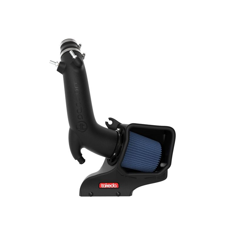A specially developed 3-angle velocity stack smoothes the airflow transition from the air filter to the mandrel-bent aluminum intake tube. Unlike factory air intake tubes that have sound baffles and make awkward bends, the Takeda intake tube is designed to give the engine less restrictive breathing, incorporating larger diameters and smooth bends. The end result is the maximum possible airflow velocity. The intake tube is available in wrinkle black or polished clear-coat finish to add style to your engine bay.