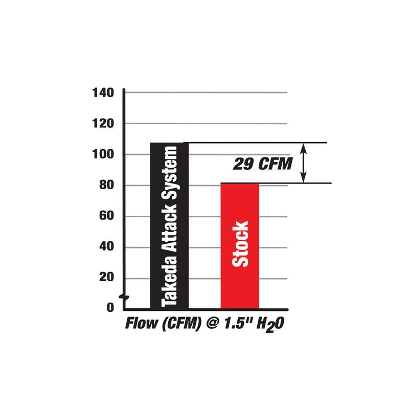 A true cold air intake system will give you the greatest possible performance gain. A free-flowing air intake system that takes in cooler, denser air from outside the engine compartment will provide your engine with more oxygen, and more oxygen in your engine's air intake charge means better combustion, resulting in greater engine output. The Takeda Attack is a true cold air intake system. It places a large, high-flow, conical 360 degree Pro DRY S air filter behind the bumper, where it can take in the coolest air possible and funnel it to your engine through smooth, mandrel-bent aluminum tubing.