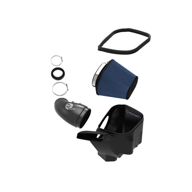 This 7in tall 360-degree radial flow air filter features a 6-1/8in x 4-1/8in oval flange and our oiled Pro 5R media with five layers of progressively finer cotton gauze media for maximum airflow and performance. This media is best suited for street and track use. The included massive air filter is surrounded by an open-element XLPE (cross-linked polyethylene) polymer housing that minimizes warm engine air for maximum performance. Its open design allows for easy viewing of the air filter and delivers an aggressive air intake sound. Multiple air inlets bring in cool air when under power. The lightweight tube is computer-designed to achieve maximum power gains while maintaining a perfect fit. Manufactured from 100% twill weave carbon fiber, it features zero fiberglass and is clear-coated for the highest quality construction. This intake is designed to use factory mounting locations, minimizing the use of unnecessary hardware, ensuring a perfect fit every time. Its revolutionary design, featuring our patent pending filter-to-housing interface uses half the number of parts of a traditional cold air intake system. Stainless-steel clamps are included for strength, and a premium bellows coupling allows for ample flexibility.