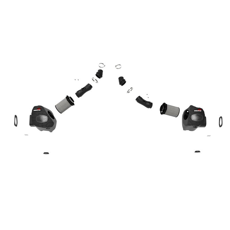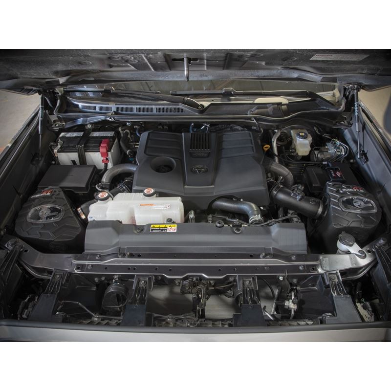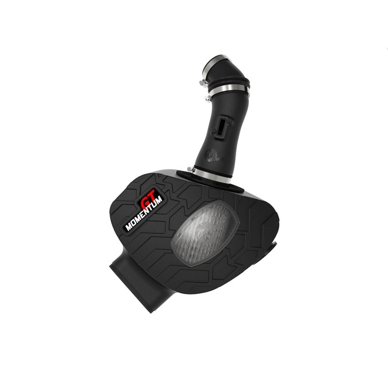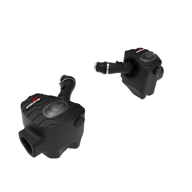 Momentum GT Cold Air Intake System w/ Pro DRY S Filter.Momentum's unique filter-to-housing interface was built to feature the largest air filter possible. These 8" tall 360-degree radial flow air filters feature a 3" flange and our oil-free Pro DRY S media with three layers of synthetic media for maximum convenience. Their progressive layering provides great filtration efficiency and dust holding capacity, while not requiring the use of oils. This media is best suited for street and light off-road use. Their expanded metal provides impact protection. These one-piece sealed housings, constructed of heat-resistant XLPE (cross-linked polyethylene) polymer, feature our patent-pending filter-to-housing interface. Their innovative design minimizes the total number of parts, making for an easy installation. Two clear sight windows allow for hassle-free filter inspection, without having to disassemble your system. This system features high quality, computer-designed, dyno-tuned intake tubes to achieve maximum power gains while maintaining a perfect fit. Their XLPE material is heat soak resistant and extremely durable. High quality premium clamps and silicone bellow couplings are used for durability while also providing the most secure installation available. Momentum GT intakes are designed with fewer parts for a quick and simple installation.