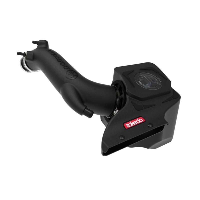 Takeda Momentum Cold Air Intake System w/ Pro 5R Media.Momentum's innovative filter-to-housing interface was built to feature the largest air filter possible. This 7-1/2" tall 360-degree radial flow air filter features a 4" flange and our pre-oiled Pro 5R media with five layers of progressively finer cotton gauze media for maximum performance. It provides your engine with the largest amount of high-flowing air and delivers the highest power gains in most cases. This media is perfect for street and/or track use. Its inverted top makes for more filter surface area, resulting in longer service intervals. The one-piece sealed housing, constructed of heat-resistant cross-linked polyethylene (XLPE), features our patent-pending filter-to-housing interface. Its innovative design minimizes the total number of parts, making for an easy installation. A large, clear sight window allows for hassle-free filter inspection, without having to disassemble your system. Its auxiliary air inlet can be used to bring in additional air from the engine compartment, or can be closed with an included plug. This system features a high quality, computer-designed, dyno-tuned intake tube to achieve maximum power gains while maintaining a perfect fit. Its XLPE material is heat soak resistant and extremely durable. It features a Takeda design inspired by import vehicles. Stainless-steel clamps and reinforced silicone couplings are included for strength and durability. Momentum intakes are designed with fewer parts for a fast and easy installation. Included billet aluminum fittings allows stock connections to transfer over seamlessly.