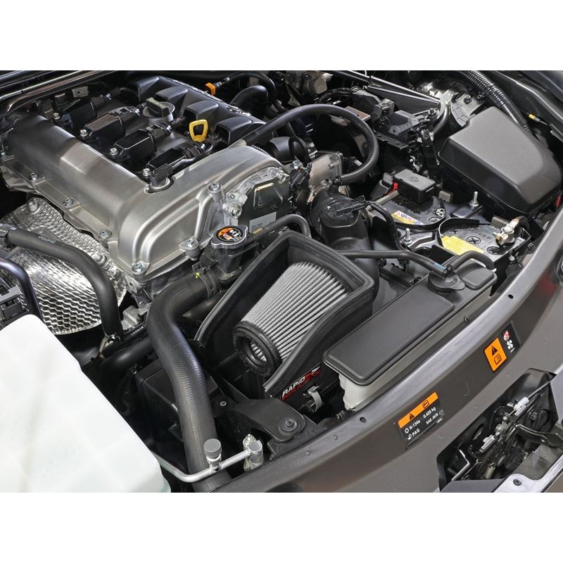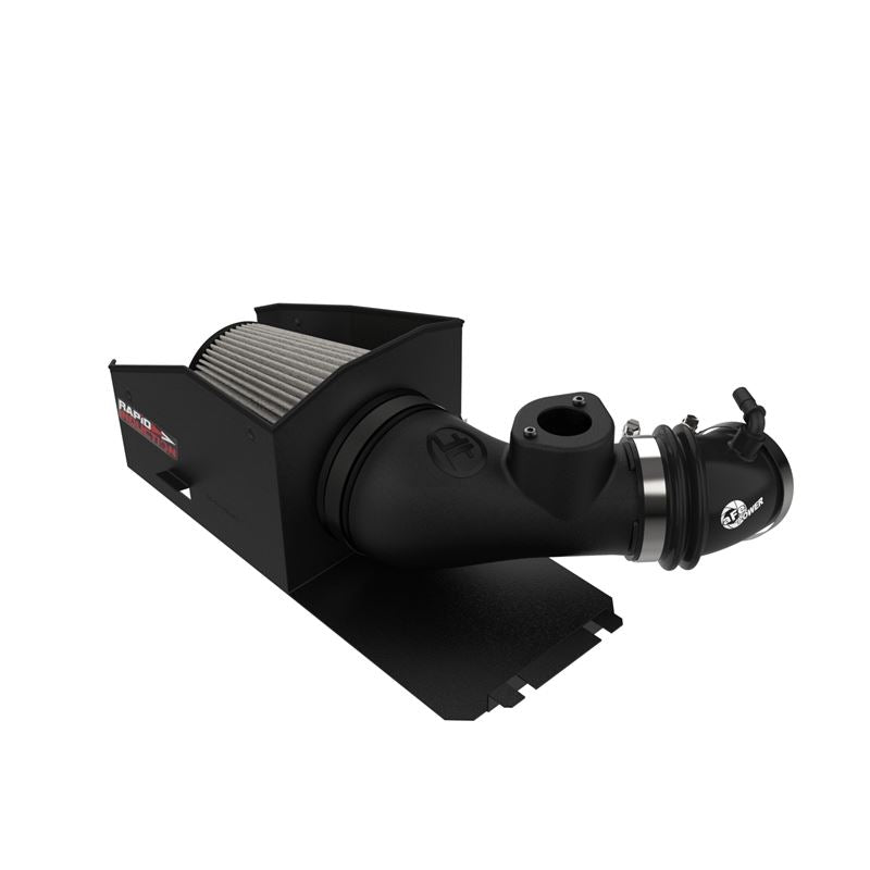 This 6in tall 360-degree radial flow air filter features a 3-1/2" flange and our oil-free Pro DRY S media with three layers of synthetic media for maximum convenience. Its progressive layering provides great filtration efficiency and dust holding capacity, while not requiring the use of oils. This media is best suited for street use. Its inverted top makes for more filter surface area, resulting in longer service intervals. aFe developed this sturdy 18 gauge steel wrinkle-black powder-coated heat shield to attach to the top of the lower half of the factory airbox to provide a hassle-free installation utilizing factory mounting locations. This system features a high quality, computer-designed, dyno-tuned intake tube to achieve maximum power gains while maintaining a perfect fit. The XLPE material is heat soak resistant and extremely durable. This intake replaces the factory upper intake box. All hardware and components are included for a hassle-free installation. This kit utilizes high quality worm clamps and a bellows silicone coupler.