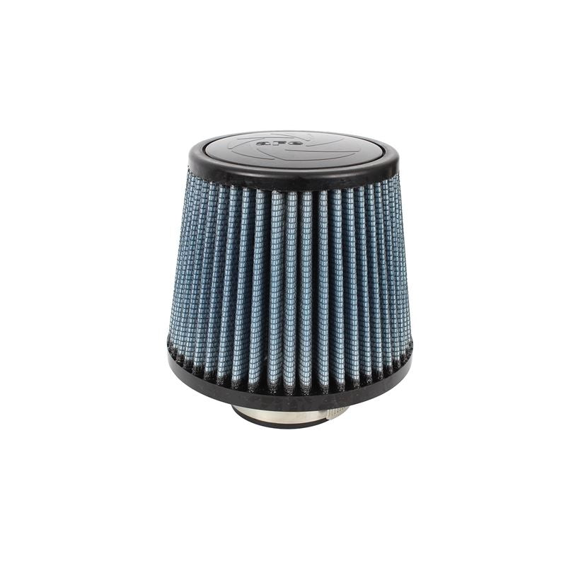 Magnum Flow Pro 5R Round Tapered Blue Air Filter (24-25001) by aFe. This high flow Pro 5R air filters are constructed with 100% polyurethane on all sides and will out flow the stock paper filters for improved performance. Five layers of progressively finer cotton media provides maximum air flow. Washable and reusable for multiple cleaning cycles, the tall, open and evenly spaced filter pleats provide excellent dust holding capacity for longer service cycle between cleanings. An integrated urethane bump seal insures a tight, leak-free seal over the life of the filter. The aFe filter system increased air flow 25% over the factory air filter set increasing horsepower, torque and improving throttle response.