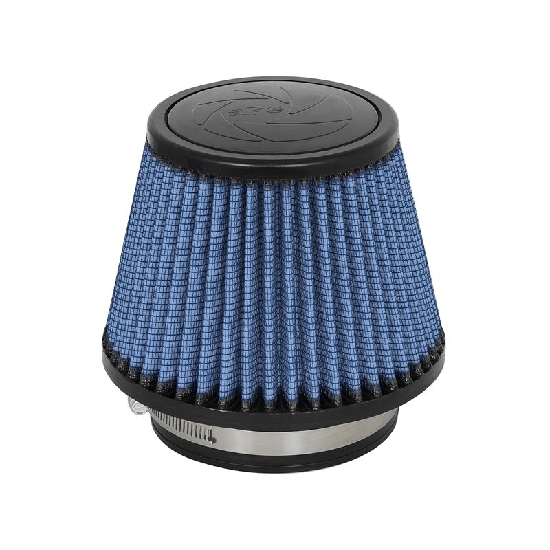 Magnum Flow Pro 5R Round Tapered Blue Air Filter (24-45001) by aFe. This high flow Pro 5R air filters are constructed with 100% polyurethane on all sides and will out flow the stock paper filters for improved performance. Five layers of progressively finer cotton media provides maximum air flow. Washable and reusable for multiple cleaning cycles, the tall, open and evenly spaced filter pleats provide excellent dust holding capacity for longer service cycle between cleanings. An integrated urethane bump seal insures a tight, leak-free seal over the life of the filter. The aFe filter system increased air flow 25% over the factory air filter set increasing horsepower, torque and improving throttle response.