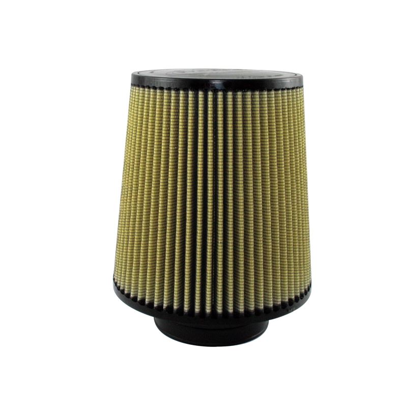 Magnum Flow Pro Guard 7 Round Tapered Tan Air Filter (72-90010) by aFe. This Pro Guard 7 performance air filter outflows the factory intake by 44%. The Inverted? design of this unique OE replacement filter fully utilized the space in the stock air box to provide the most filter media of any drop-in? OE replacement filter. With seven layers of progressively finer mesh cotton gauze/synthetic media, this high flow oiled? OE replacement performance filter provide maximum protection with highest cumulative filtration efficiency for severe duty environments. Washable and reusable for multiple cleanings, the tall open evenly spaced pleats provide excellent dust holding capacity for longer service cycle between cleanings. Integrated urethane bump seal insures tight, no leak seal over the life of the filter.