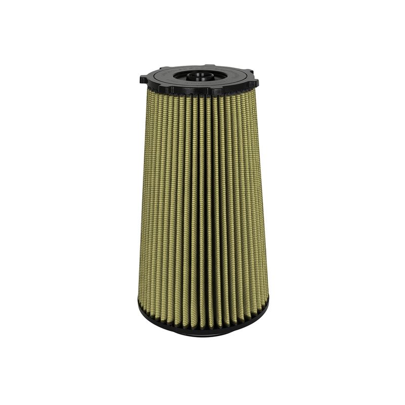 Magnum Flow Pro Guard 7 Round Tapered Tan Air Filter (72-90036) by aFe. This Pro Guard 7 performance air filter outflows the factory intake by 44%. The Inverted? design of this unique OE replacement filter fully utilized the space in the stock air box to provide the most filter media of any drop-in? OE replacement filter. With seven layers of progressively finer mesh cotton gauze/synthetic media, this high flow oiled? OE replacement performance filter provide maximum protection with highest cumulative filtration efficiency for severe duty environments. Washable and reusable for multiple cleanings, the tall open evenly spaced pleats provide excellent dust holding capacity for longer service cycle between cleanings. Integrated urethane bump seal insures tight, no leak seal over the life of the filter.
