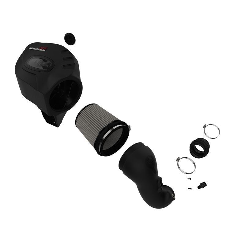 This 6-1/2" tall 360-degree radial flow air filter features a 5-1/2" round flange and our oil-free Pro DRY S media with three layers of synthetic media for maximum convenience. Its progressive layering provides great filtration efficiency and dust holding capacity, while not requiring the use of oils. This media is best suited for street and light off-road use. The smooth one-piece sealed housing, constructed of heat-resistant XLPE (cross-linked polyethylene) polymer, features our patent-pending filter-to-housing interface. A large, clear sight window allows for hassle-free filter inspection, without having to disassemble your system. This system features a high quality, computer-designed, dyno-tuned intake tube to achieve maximum power gains while maintaining a perfect fit. Its XLPE material is heat-soak resistant and extremely durable. This intake is designed to use factory mounting locations, minimizing the use of unnecessary hardware, ensuring a perfect fit every time. Its revolutionary design, featuring our patent pending filter-to-housing interface uses half the number of parts of a traditional cold air intake system. Stainless-steel worm clamps are included for strength, and a premium silicone coupling allows for ample flexibility.