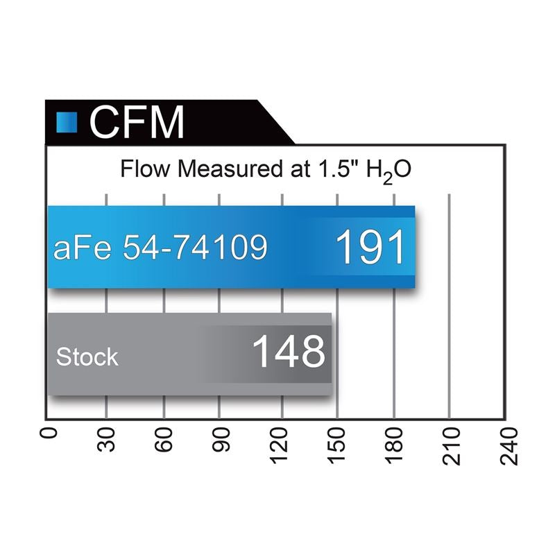 If you're on a budget or don't have a lot of time to work on your vehicle, don't think you have to forget about getting more performance or fuel mileage from your car or truck. The aFe Momentum Cold Air Intake System is inexpensive and can be installed in an hour or less with simple hand tools. This system replaces your factory air filter and airbox with your choice of aFe performance air filter and a one-piece open element airbox/heat shield that seals against the hood, isolating the filter from engine heat. The increased flow of cooler air to your engine will result in noticeable gains in power and performance. Cooler, denser air contains more oxygen, and more oxygen in your engine's air intake charge means better combustion, resulting in greater engine output.
