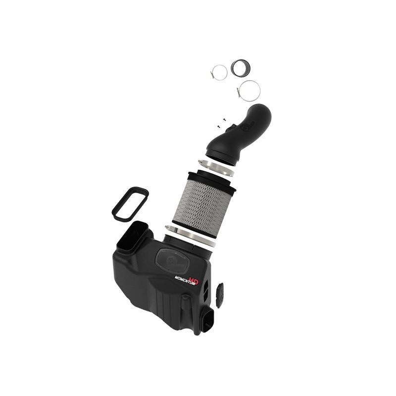 Momentumandrsquo;s unique filter-to-housing interface was built to feature the largest air filter possible. This 9andrdquo; tall 360-degree radial flow air filter features a 5-1/2" flange and our oil-free Pro DRY S media with three layers of synthetic media for maximum convenience. Its progressive layering provides great filtration efficiency and dust holding capacity, while not requiring the use of oils. This media is best suited for street use. Its inverted top makes for more filter surface area, resulting in longer service intervals, while reinforced metal provides maximum strength to prevent filter collapse. Momentumandrsquo;s innovative filter-to-housing interface was built to feature the largest air filter possible. Once the system is installed, the air filter can be easily removed from the housing for maintenance by only uninstalling the intake tube. The smooth one-piece sealed housing, constructed of heat-resistant cross-linked polyethylene (XLPE), features our patented (US PAT 9440175) filter-to-housing interface. Its innovative design minimizes the total number of parts, making for an easy installation. A large, clear sight window allows for hassle-free filter inspection, without having to disassemble your system. The housing incorporates factory air scoop inlets, using no additional hardware, and features an optional auxiliary air inlet that pulls in additional air. This system features a high quality, computer-designed, dyno-tuned intake tube to achieve maximum power gains while maintaining a perfect fit. Its XLPE material is heat soak resistant and extremely durable. Stainless-steel T-bolt clamps and a silicone reinforced coupling are used for strength and durability. Momentum HD intakes are designed with fewer parts for a fast and easy installation.