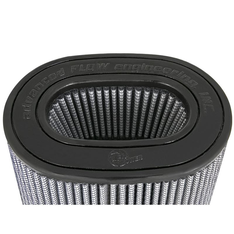 Magnum Flow Pro Dry S Oval Tapered Gray Air Filter (21-91126) by aFe. This high flow Pro DRY S air filters are constructed with 100% polyurethane on all sides and will out flow the stock paper filters for improved performance. With three layers of progressively finer mesh synthetic media between 100% polyurethane top and base, this high flow, "oil-free" conical performance filter provides maximum convenience and easy maintenance with excellent airflow. Washable and reusable for multiple cleanings, the tall open evenly spaced pleats provide excellent dust holding capacity for longer service cycle between cleanings. Pliable polyurethane flange with integrated bumps insures tight, no leak seal over the life of the filter. This filter has a 99.2% filter efficiency.