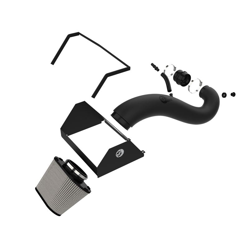 This intake system features a 7in tall conical air filter with three layers of oil-free synthetic media and requires no oil during maintenance to provide maximum convenience. Its progressive layering provides great filtration efficiency and dust holding capacity. This media is best suited for street and light off-road use. Pro DRY S filters are easily recharged with aFe's POWER CLEANER. aFe developed this sturdy 18 gauge steel wrinkle-black powder-coated heat shield to attach to the top of the lower half of the factory airbox to provide a hassle-free installation utilizing factory mounting locations. This system features a high quality, computer-designed, dyno-tuned intake tube to achieve maximum power gains while maintaining a perfect fit. The Cross-Linked Polyethylene (XLPE) material is heat soak resistant and extremely durable. This intake replaces the factory upper intake box. All hardware and components are included for a hassle-free installation. This kit utilizes high quality stainless steel clamps and a reinforced silicone coupler.