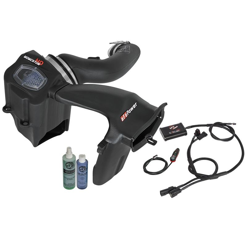 Momentum HD Aluminum Black Cold Air Intake System and Scorcher HD Module with Pro 10R Filter (77-43020-PK) by aFe. Bringing you the next generation of intakes, the Momentum HD sealed air intake system is superior in every way. From the one-piece sealed housing with a built-in sight window, to the massive 1,000 cfm air filter and premium hardware.