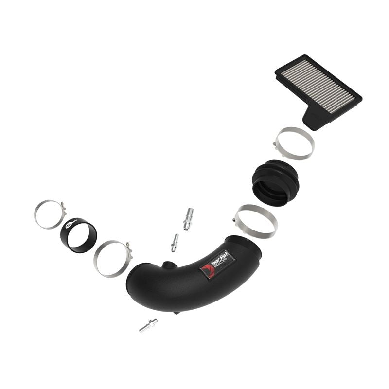 This filter features three layers of oil-free synthetic media and requires no oil during maintenance to provide maximum convenience. Its progressive layering provides great filtration efficiency and dust holding capacity. This media is best suited for street use. Pro DRY S filters are easily recharged with aFe's POWER CLEANER. This system features a high quality, computer-designed, dyno-tuned intake tube to achieve maximum power gains while maintaining a perfect fit. Its XLPE material is heat soak resistant and extremely durable. Stainless-steel T-bolt clamps and silicone couplings are used for strength and durability.