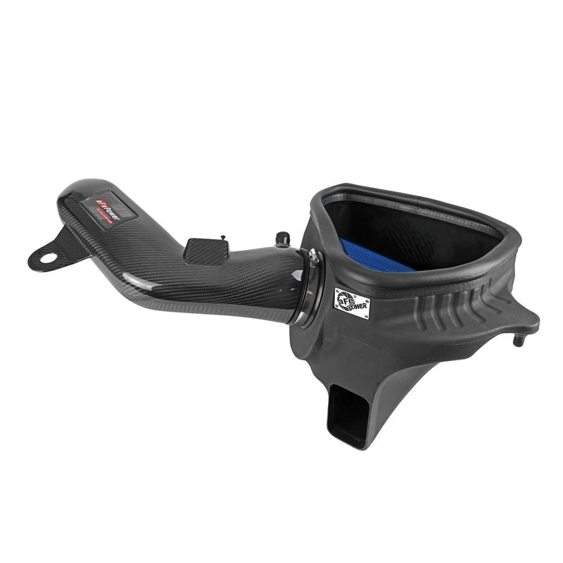 This 7in tall 360-degree radial flow air filter features a 4in round flange and our oiled Pro 5R media with five layers of progressively finer cotton gauze media for maximum airflow and performance. This media is best for street and track use. The included massive air filter is surrounded by an open-element XLPE (cross-linked polyethylene) polymer housing that pulls in air from the front of the vehicle and minimizes warm engine air, for maximum performance. Its open design allows for easy viewing of the air filter and delivers an aggressive Air Intake sound. It connects to the vehicle's factory air inlet with no additional hardware. The lightweight tubes are computer-designed to achieve maximum power gains while maintaining a perfect fit. Manufactured from 100% twill weave carbon fiber, they feature zero fiberglass and are clear-coated for the highest quality construction. This intake is designed to use factory mounting locations, minimizing the use of unnecessary hardware, ensuring a perfect fit every time. Its revolutionary design, featuring our patent pending filter-to-housing interface, uses half the number of parts of a traditional cold air intake system.