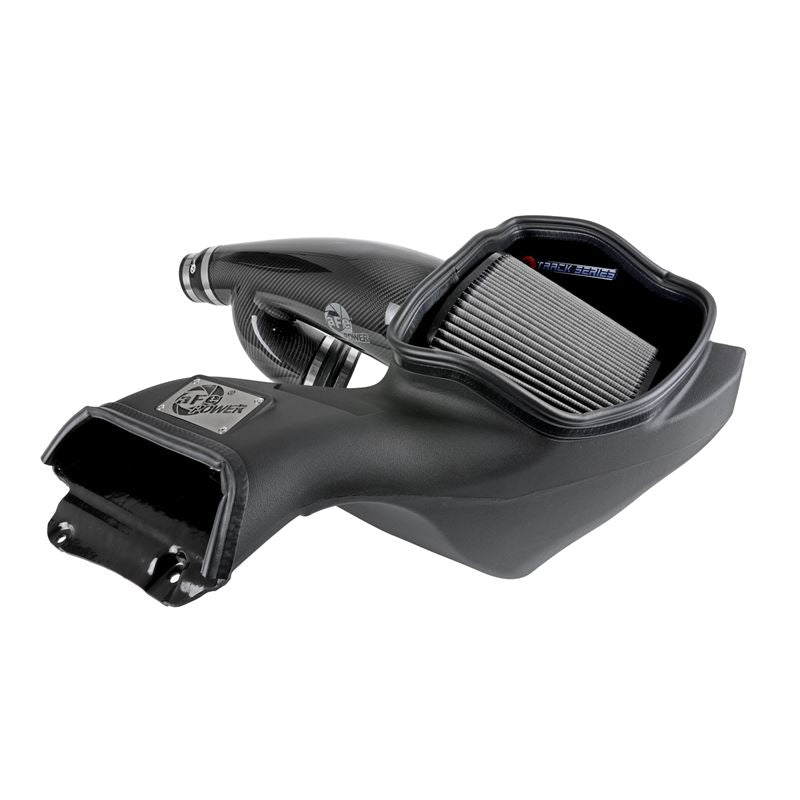 This 9in tall 360-degree radial flow air filter features a 5-1/2" flange and our oil-free Pro DRY S media with three layers of synthetic media for maximum convenience. Its progressive layering provides great filtration efficiency and dust holding capacity, while not requiring the use of oils. This media is best suited for street use. Its inverted top makes for more filter surface area, resulting in longer service intervals. The included massive air filter is surrounded by an open-element XLPE (Cross-linked Polyethylene) polymer housing that minimizes warm engine air for maximum performance. Its open design allows for easy viewing of the air filter, and an aggressive air intake sound. The built-in air intake scoop captures cold air directly from the top of the radiator support thanks to its huge opening. The lightweight tube is computer-designed to achieve maximum power gains while maintaining a perfect fit. Manufactured from 100% twill weave carbon fiber, it features zero fiberglass and is clear-coated for the highest quality construction. The computer designed system utilizes factory mounting locations, minimizing the use of unnecessary hardware and ensuring a perfect fit every time. Its innovative design makes for a hassle-free, direct bolt-on installation process that requires no cutting or drilling. Stainless-steel clamps are included for strength, and premium silicone couplings allow for ample flexibility. Track Series intakes are designed with fewer parts for a fast and easy installation.