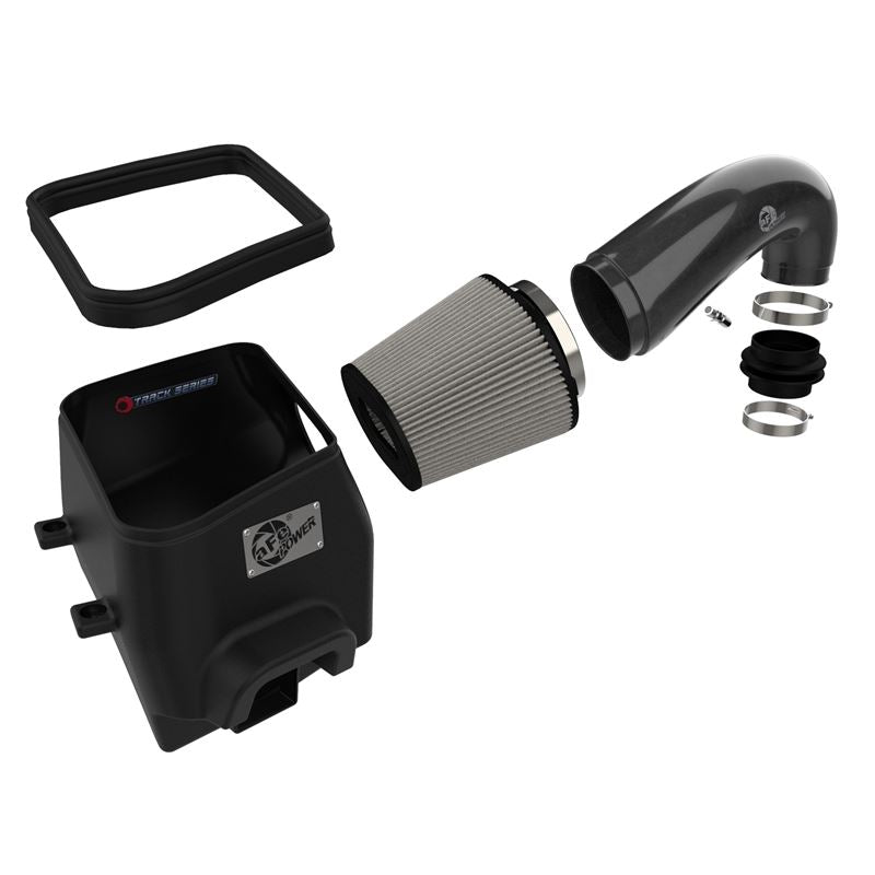 This 9in tall 360-degree radial flow air filter features a 5-1/2" flange and our oil-free Pro DRY S media with three layers of synthetic media for maximum convenience. Its progressive layering provides great filtration efficiency and dust holding capacity, while not requiring the use of oils. This media is best suited for street and light off-road use. The included massive air filter is surrounded by an open-element XLPE (Cross-linked Polyethylene) polymer housing that minimizes warm engine air for maximum performance. Its open design allows for easy viewing of the air filter and delivers an aggressive Air Intake sound. It utilizes the vehicles OE air inlet with no additional hardwareThe lightweight tube is computer-designed to achieve maximum power gains while maintaining a perfect fit. Manufactured from 100% twill weave carbon fiber, it features zero fiberglass and is clear-coated for the highest quality construction. The computer designed system utilizes factory mounting locations, minimizing the use of unnecessary hardware and ensuring a perfect fit every time. Its innovative design makes for a hassle-free, direct bolt-on installation process that requires no cutting or drilling. Its revolutionary design, featuring our patent pending filter-to-housing interface, uses half the number of parts of a traditional cold air intake system.