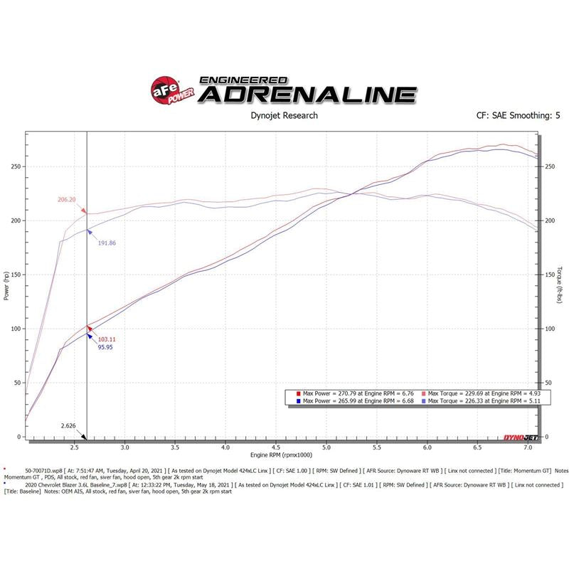 Momentum GT Cold Air Intake System w/ Pro DRY S Media.This 7.5" tall 360-degree radial flow air filters feature a 6" x 4" flange and our oil-free Pro DRY S media with three layers of synthetic media for maximum convenience. Their progressive layering provides great filtration efficiency and dust holding capacity, while not requiring the use of oils. Its inverted top makes for more filter surface area, resulting in longer service intervals. This media is best suited for street use. Momentum's innovative filter-to-housing interface was built to feature the largest air filter possible. Once the system is installed, the air filter can be easily removed from the housing for maintenance by uninstalling the intake tube. The smooth one-piece sealed housing, constructed of heat-resistant cross-linked polyethylene (XLPE), features our patent-pending filter-to-housing interface. Its innovative design minimizes the total number of parts, making for an easy installation. A large, clear sight window allows for hassle-free filter inspection, without having to disassemble your system. The housing connects to the factory air inlet, using no additional hardware. Its auxiliary air inlet can be used to bring in additional air from the engine compartment, or can be closed with an included plug. This system features a high quality, computer-designed, dyno-tuned intake tube to achieve maximum power gains while maintaining a perfect fit. Its XLPE material is heat soak resistant and extremely durable. High quality premium clamps and a silicone bellow coupling are used for durability while also providing the most secure installation available. Momentum GT intakes are designed with fewer parts for a quick and simple installation.