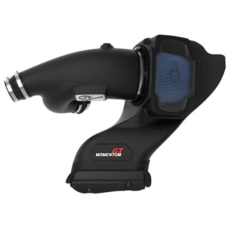 Momentum GT Cold Air Intake System w/ Pro 5R Media.Momentum's unique filter-to-housing interface was built to feature the largest air filter possible. This 9" tall, pre-oiled 360-degree radial flow air filter features our pre-oiled Pro 5R media with five layers of progressively finer cotton gauze media for maximum performance and filtration. Its inverted top and large surface area provide much longer life between maintenance intervals. This media is perfect for street use. The smooth one-piece sealed housing, constructed of heat-resistant cross-linked polyethylene (XLPE), features our patent-pending filter-to-housing interface. Its innovative design minimizes the total number of parts, making for an easy installation. A large, clear sight window allows for hassle-free filter inspection, without having to disassemble your system. The housing incorporates the factory air inlet scoop. A silicone seal piece finishes the inlet of the housing and seals to the hood to block off unwanted hot engine air from entering the air intake system. This system features a high quality, computer-designed, dyno-tuned intake tube to achieve maximum power gains while maintaining a perfect fit. Its XLPE material is heat soak resistant and extremely durable. Stainless-steel clamps are included for strength, and premium silicone couplings allows for ample flexibility. Momentum GT intakes are designed with fewer parts for a fast and easy installation.