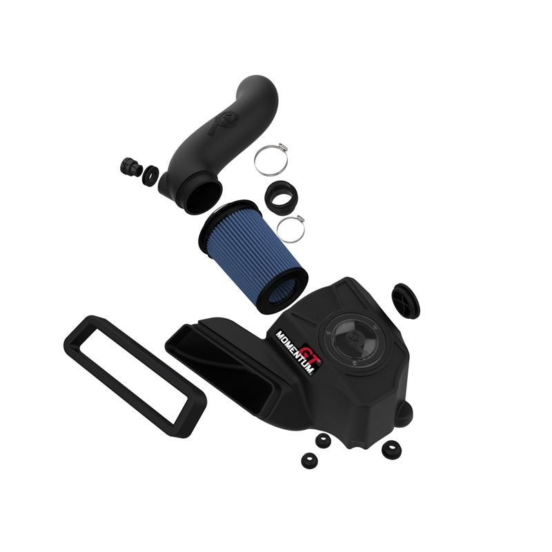 Momentum GT Cold Air Intake System w/ Pro 5R Media.This aFe POWER Pro 5R air filter is a 7-1/2" tall, pre-oiled, 360-degree radial flow performance air filter with five layers of progressively finer cotton gauze media for maximum performance. It provides your engine with the largest amount of high-flowing air, usually resulting in the highest power gains out of all our filter media options. This media is perfect for street and/or track use. The sealed XLPE polymer housing features a rugged design, as well as a clear sight window, allowing for hassle-free filter inspection. aFe POWER's patent pending filter-to-housing interface eliminates the use of an overabundance of parts, further simplifying the installation process. The housing utilizes the factory air inlet, using no additional hardware, and features an optional auxiliary air inlet that pulls in additional air. This system features a high quality, computer-designed, dyno-tuned intake tube to achieve maximum power gains while maintaining a perfect fit. Its XLPE material is heat soak resistant and extremely durable. The computer designed system utilizes factory mounting locations, minimizing the use of unnecessary hardware and ensuring a perfect fit every time. Its innovative design makes for a hassle-free, direct bolt-on installation process that requires no cutting or drilling. Its revolutionary design, featuring our patent pending filter-to-housing interface, uses half the number of parts of a traditional cold air intake system.