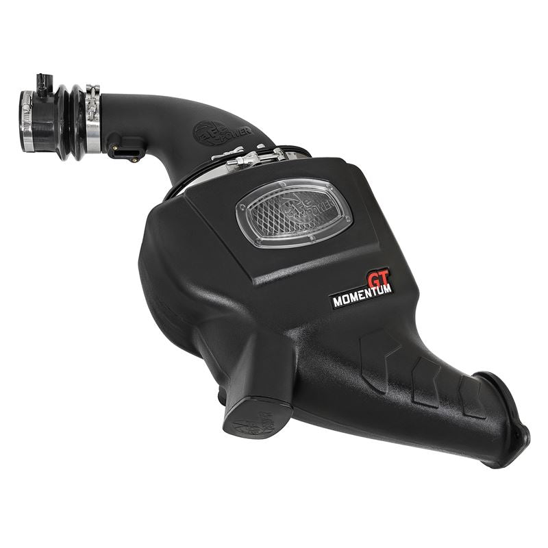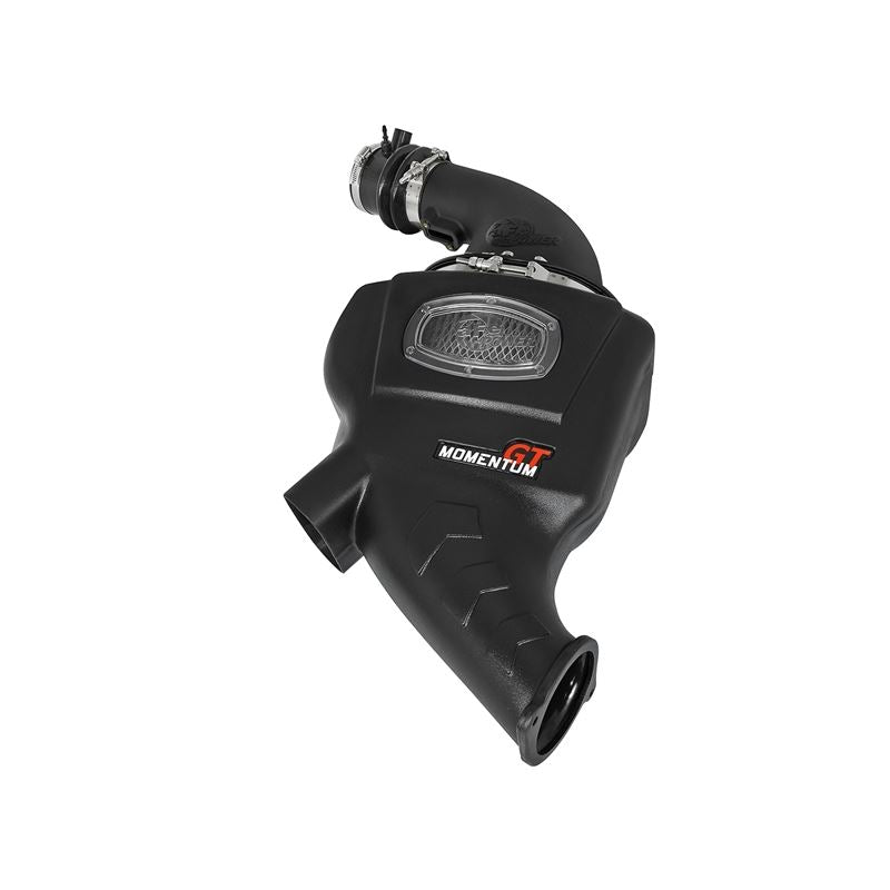 Momentum GT Cold Air Intake System w/ Pro DRY S Media.Huge 3-Layer Performance Air Filter: The Momentum GT intake is designed around an oil-free, large 9" oval 360 degree radial flow performance air filter with 3-layers of progressive finer porosity synthetic media providing maximum convenience. The unique air filter to housing interface (patent pending) allows for maximum filter size which increases the available air volume while simplifying the installation process. The air filter is wrapped in reinforced metal providing maximum strength to prevent filter collapse. Also included is a Magnum SHIELD Pre-filter to protect your performance air filter from debris, repel water and keep your air filter cleaner, longer. Unique One-Piece High Quality Housing W/ Sight Window: A custom CAD designed roto-molded housing made from heat soak resistant material eliminates the use of multiple components and ensures the coolest air intake charge available. A large clear sight window allows for filter inspection without removal of the air box. The roto-molded housing is made out of black cross-linked polyethylene. A urethane plug is also included if you wish to completely seal the auxiliary air scoop. High Quality Tube: This system uses a high quality plastic CAD designed, dyno-tuned, roto-molded intake tube to achieve maximum power gains while maintaining a perfect fit. Premium Hardware: Premium stainless steel T-bolt clamps and a silicone bellows coupling are used for durability while also providing the most secure installation available. Momentum GT intakes are designed with fewer parts for a quick and simple installation. Emissions Disclaimer: This product does not require a CARB EO# (Vehicle does not exist in U.S.)