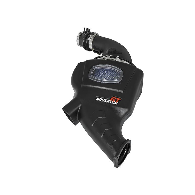 Momentum GT Cold Air Intake System w/ Pro 5R Media.Huge 5-Layer Performance Air Filter: The Momentum GT intake is designed around a pre-oiled, large 9" oval 360 degree radial flow performance air filter with 5-layers of progressive finer mesh cotton media providing maximum airflow and performance. The unique air filter to housing interface (patent pending) allows for maximum filter size which increases the available air volume while simplifying the installation process. The air filter is wrapped in reinforced metal providing maximum strength to prevent filter collapse. Also included is a Magnum SHIELD Pre-filter to protect your performance air filter from debris, repel water and keep your air filter cleaner, longer. Unique One-Piece High Quality Housing W/ Sight Window: A custom CAD designed roto-molded housing made from heat soak resistant material eliminates the use of multiple components and ensures the coolest air intake charge available. A large clear sight window allows for filter inspection without removal of the air box. The roto-molded housing is made out of black cross-linked polyethylene. A urethane plug is also included if you wish to completely seal the auxiliary air scoop. High Quality Tube: This system uses a high quality plastic CAD designed, dyno-tuned, roto-molded intake tube to achieve maximum power gains while maintaining a perfect fit. Premium Hardware: Premium stainless steel T-bolt clamps and a silicone bellows coupling are used for durability while also providing the most secure installation available. Momentum GT intakes are designed with fewer parts for a quick and simple installation. Emissions Disclaimer: This product does not require a CARB EO# (Vehicle does not exist in U.S.)