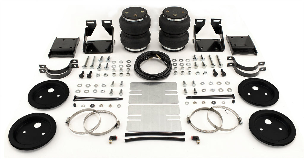 LoadLifter 5000 ULTIMATE adjustable air spring kits feature all of the benefits of our heaviest rated air spring with the addition of an internal jounce bumper inside the spring for the ultimate in ride comfort. An Air Lift exclusive product! Fits vehicles with in-bed hitches. Tow and haul the heaviest loads with safety and comfort with LoadLifter 5000 ULTIMATE. Works with vehicle's leaf springs to provide up to 5,000 lbs. of front load leveling capacity and keeps the vehicle riding stable, level and comfortable whether loaded or unloaded. Fully adjustable from 5 to 100 PSI. The closed-cell urethane foam jounce bumper inside the ULTIMATE air springs provide a cushion of air that absorbs shock, eliminates harsh jarring on rough roads and protects vehicles carrying heavy loads. Never bottom out again with the ULTIMATE! LoadLifter 5000 ULTIMATE air springs are maintenance free! Safely run with zero air pressure because of the internal jounce bumper. Replaces factory jounce bumper that is sometimes removed when adding air springs. Easy to install in less than 2 hours. Includes industry-exclusive 60 Day No Questions Money Back Guarantee! Includes the most comprehensive Lifetime Warranty in the industry-covers all kit contents including brackets, fittings and air line. Air springs are built like a tire and are reinforced by durable, 2-ply fabric for maximum strength. Exclusive upper and lower roll plates included. Protect the springs from sharp edges, such as brackets or the frame. They increase load capacity up to 10%. The kit includes 2 air springs, brackets, air lines, Schrader valve and all of the hardware needed for installation. Includes fully illustrated instruction manual. Add an Air Lift on-board air compressor system to inflate and deflate air springs with the touch of a button from inside or outside of the vehicle. Air Lift is a 3rd generation family owned company that has been manufacturing the highest quality suspension products in Lansi