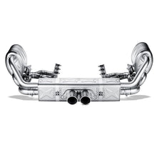The Akrapovic fully titanium Evolution exhaust system complements the Slip-On muffler and tailpipes with a newly developed exhaust manifold with 100 cpsi sports catalytic convertors that guarantee an increase in power and torque, as do the newly developed and optimized pre-mufflers. However, the real plus of this performance exhaust system is the weight reduction, while it maintains the original layout and functionality of the exhaust caps. The weight distribution of the vehicle is improved considerably, and the weight reduction behind the engine and the rear axle enhances the handling. The sound impression in this configuration is somewhat more voluminous and, with opened caps, more aggressive than in the original version. When installing Akrapovic aftermarket optional link pipes with sports catalytic converters or without catalytic converters, which are developed for use on closed tracks only, remapping the ECU is mandatory. When installing Akrapovic aftermarket exhaust system that was developed for use on closed tracks, we recommend remapping the ECU in order to prevent potential ?check engine light? warning signals.