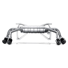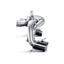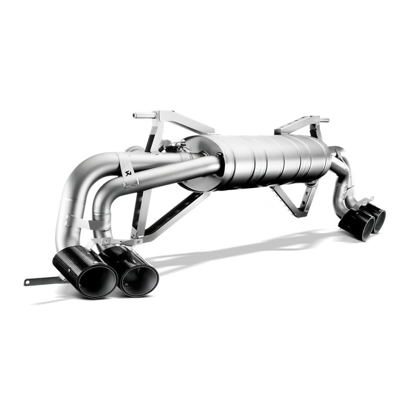 The precision-engineered titanium alloy Slip-On performance exhaust system reduces the weight of this supercar and improves handling. We’ve extracted additional power through improved gas-flow dynamics and a drop in back pressure. To complement our muffler design, we’ve added our well-known cast titanium dual-mode exhaust valves to create a virtual symphony from the large displacement V10. If no optional Akrapovic sound kit for adjustable sound is used, at lower engine speeds and during cruise operation the valves are closed and produce a deeper and sharper exhaust note. At wide-open throttle the valves open, releasing the full fury of the engine. The driver can control the sound with the Akrapovic sound kit. Complete the look with a set of four exquisite tailpipes in carbon fibre.