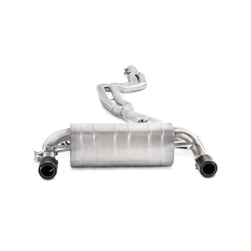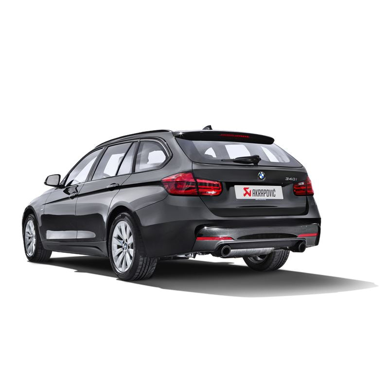 Evolution exhaust systems for the BMW 340i are the result of the perfect integration of expertise, the best technology, and the use of the finest materials. Made of austenitic stainless steel, these systems feature a layout with two central mandatory link pipes replacing the single stock pipe. The system is finished with carbon fibre tailpipes. This sporty elegance makes this Bavarian machine stand out from the rest and offers the taste of a more powerful version, accentuated with the additional power gains and weight losses of the Evolution performance exhaust system. The dual-mode ECU-controlled valve exhaust from Akrapovic offers stock-level sound at normal cruising, and a joyful deep sporty note when driving the 340i more dynamically. The Evolution systems replace the stock exhaust from the catalytic converters back. The high-performance exhaust by Akrapovic gives you absolute freedom to customize your vehicle to make it perform and sound at its best. This product will significantly improve your performance and deliver a superior driving experience you've been looking for.