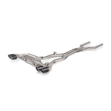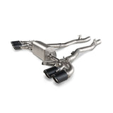 Constructed from high-grade lightweight titanium alloys, the Evolution Line (Titanium) exhaust system has been perfectly tuned to deliver the very best aural experience in all driving modes. Through extensive testing and development, the Akrapovic sound engineers have coaxed a deep, sporty, higher-frequency V8 sound from the car's turbo engine, more akin to that of a muscle car, while keeping it smooth and eliminating any drone that might hamper the enjoyment. The full titanium exhaust system is finished with two sets of carbon-fibre / titanium tailpipes coming from a central muffler layout featuring two valves, one located on either side of the muffler. The housings are cast in-house in the Akrapovic foundry, and there is a cast collector on the link pipe, where gases from both sides of the engine mix, all designed to create a perfect sound. This plug-and-play exhaust system can be further regulated with the addition of the Akrapovic Sound Kit to control the valves in the exhaust and switch between the sound modes. Further visual enhancements can be achieved with the addition of the optional hand-made carbon-fibre diffuser and mirror caps, available in matte and glossy finishes to provide an eye-catching accompaniment to match the Evolution Line (Titanium). Fittment notice:This system does not fit on vehicles equipped with Otto particulate filter (OPF). THIS PRODUCT DOES NOT MEET EMISSION COMPLIANCE REQUIREMENTS FOR STREET OR HIGHWAY USE.