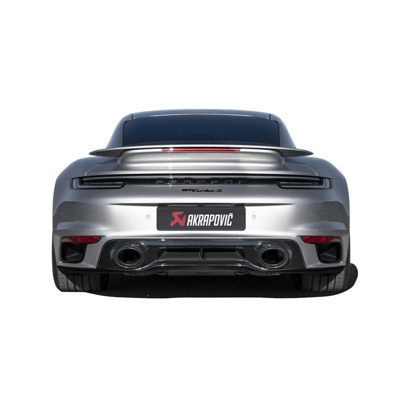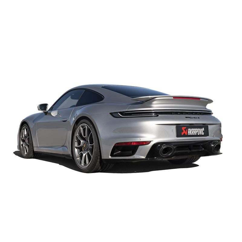 All of the knowledge and experience gained while working with various engines from the sports car manufacturer from Stuttgart was poured into this outstanding aftermarket exhaust system. Produced from lightweight titanium, the system uses complex parts meticulously crafted using the in-house titanium foundry to offer perfect acoustics. An instant deepness prevails from the moment the engine is started and as the revs rise, and so does the sensory involvement. At low rpms the exhaust emits a deep, iconic flat-six rumble, moving through a powerful mid-range, which then develops into a rich, strong, and high-frequency acoustic sensation at high revs, perfectly tuned to upshifts, providing a thrilling experience as the higher gears are selected and exhilarating, race-inspired burbles through the downshifts. This sound pattern is achieved with a carefully calculated H-link between the main pipes, which is precisely welded at a selected position. The system has been developed for use on closed-course competition circuits, but there is no compromise on comfort because the tuning of the system eliminates any drone or unwanted flow noise. Power and torque increases have been recorded at +16.6 kW (22.5 hp) and +46.8 Nm at 3,400 rpm when tested in back-to-back runs on the Akrapovic dyno against a Porsche 911 Turbo (992) using the Porsche stock sports exhaust system, with the torque curve offering a perfect response from low down engine speed. The system is not EC/ECE type approved. Fitment notice: The system is designed to replace the Porsche sport exhaust system. If you would like to install the Akrapovic exhaust system on vehicles with a non-sport stock exhaust, please check the installation instructions or request more information from official Akrapovic dealers. THIS PRODUCT DOES NOT MEET EMISSION COMPLIANCE REQUIREMENTS FOR STREET OR HIGHWAY USE.
