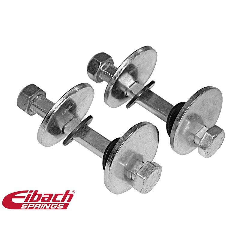 On most modern vehicles, lowering your suspension will tilt the wheels inward at the top as they follow a circular pivot path. This is known as negative camber, measured in degrees. Typically, a one-inch drop can lead to -.75 degrees of camber. A two-inch drop changes camber by -1.5 degrees, and a three-inch drop can result in -2.0 or more degrees of change. Eibach's Pro Alignment kit is designed for your specific vehicle, and designed to provide the amount of correction needed to reverse the negative camber. It puts your tires back on the ground again and makes sure they are riding flat to maintain a proper contact patch. The camber alignment kit is recommended with all Eibach SportLine, ProLine, Pro-Street, or Multi-Pro series suspension lowering kits. Components in the Pro Alignment Kit you receive will vary depending on vehicle application and may include camber arms, camber bolts, replacement ball joints, replacement control arms, or flat shims. Once corrections have been made, stability, performance and safety will be restored and you will avoid very expensive tire wear. On some vehicle chassis applications, alignment specialists can opt to leave the camber at a slightly negative degree to heighten turn-in and responsiveness because Eibach kits make that possible. Eibach proudly builds the Pro Alignment Kit in the United States, and backs all components with a two year warranty against manufacturing defects. Founded in 1949 in Germany by Heinrich Eibach, Eibach has grown from a small workshop-based manufacturer into a global leader and manufacturer of springs and related products. You'll find Eibach springs as the chosen brand in a wide variety of industries and automotive applications. From miniscule springs for incredibly small pressure valves to large industrial tension coils, Eibach's growth and success has always been attributed to a company spirit that drives them to be the best. Eibach automotive springs have been instrumental in vehicles achieving victories in NASCAR, Formula 1, ARCA, GT3, FIA World Rallye, and V8 Supercar championship racing series among others and have been used as original equipment by AMG and other respected vehicle tuners since the 1970s. Today, Eibach also has world headquarters for North America in California where they manufacture all products sold on these shores.
