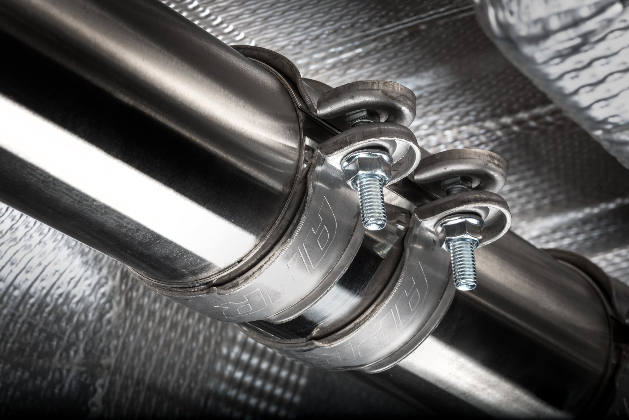 The APR Catback Exhaust System personalizes your vehicle's looks, sound and performance. Beautifully hand-crafted T304-stainless-steel components adorn the system with stunning TIG-welding throughout. Our straight-through brushed-finished mufflers are configurable to your desire, smoothing the exhaust note to a deep growl, without adding restrictions, rasp or drone. Strong high-quality bracketry and OEM-style clamps hold the system steadily in place, making the install or removal a snap, and fitment simple, yet precise. A cast 3" to dual 2.5" rear splitter creates an ultra-smooth transition, steadily feeding exhaust gasses out of the system, while looking tidy from under the rear bumper. Finally, removable 4" polished slash-cut exhaust tips finish the system, adding a classy motorsport-inspired touch to the rear of the vehicle.